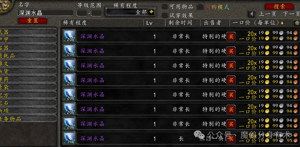其核心原因在于当前服务器附魔材料的市场行情。分解骨架护腕有极高概率获得“深渊水晶”,而当前一个深渊水晶的拍卖行售价同样在20金上下波动。如果你的小号角色学习了附魔专业,那么这整个过程就形成了一次完美的循环。