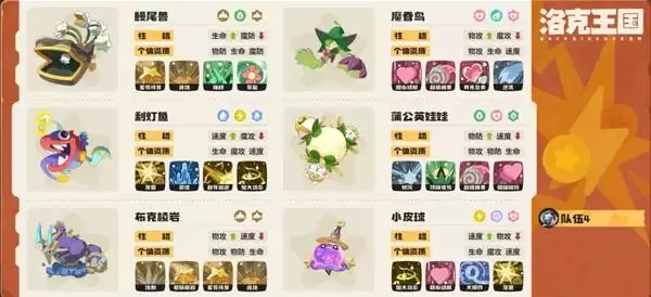 鳗尾兽是队伍中稳健的开局选择。它能够学习蓄势待发,并且拥有出色的耐久面板,即使其特性会扣除部分血量,生存能力依然可观。开局阶段,它可以利用“抽枝”、“聚盐”、“土遁”等变化技能与对手周旋,干扰对方节奏,为后续核心精灵上场创造有利条件。