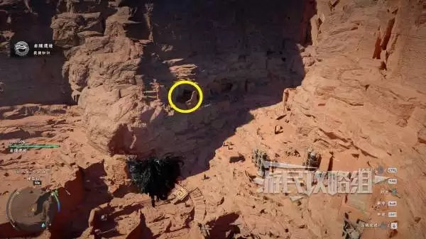 这把传说弓箭位于红色沙漠区域的碎石山岩缝遗迹。前往此处有一个高效技巧:你无需清理路径上的怪物,只需从附近的高地山顶,直接使用滑翔装置飞向目标点,即可安全、快速地抵达。