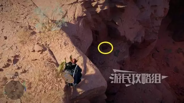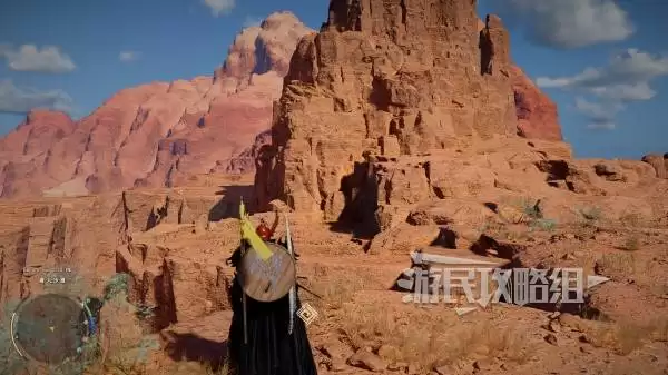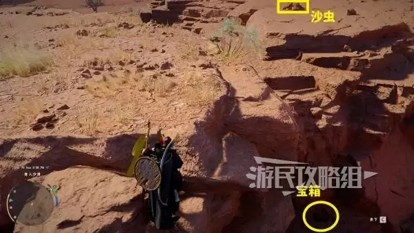 具体流程如下:首先,你需要攀爬至那片崎岖陡峭的岩石高地。请重点关注下图中黄色圆圈所标记的地形——那是一个从平地凸起的显著小土堆。接近该区域时务必保持警惕,因为潜伏的“沙虫”敌人会突然发起袭击。