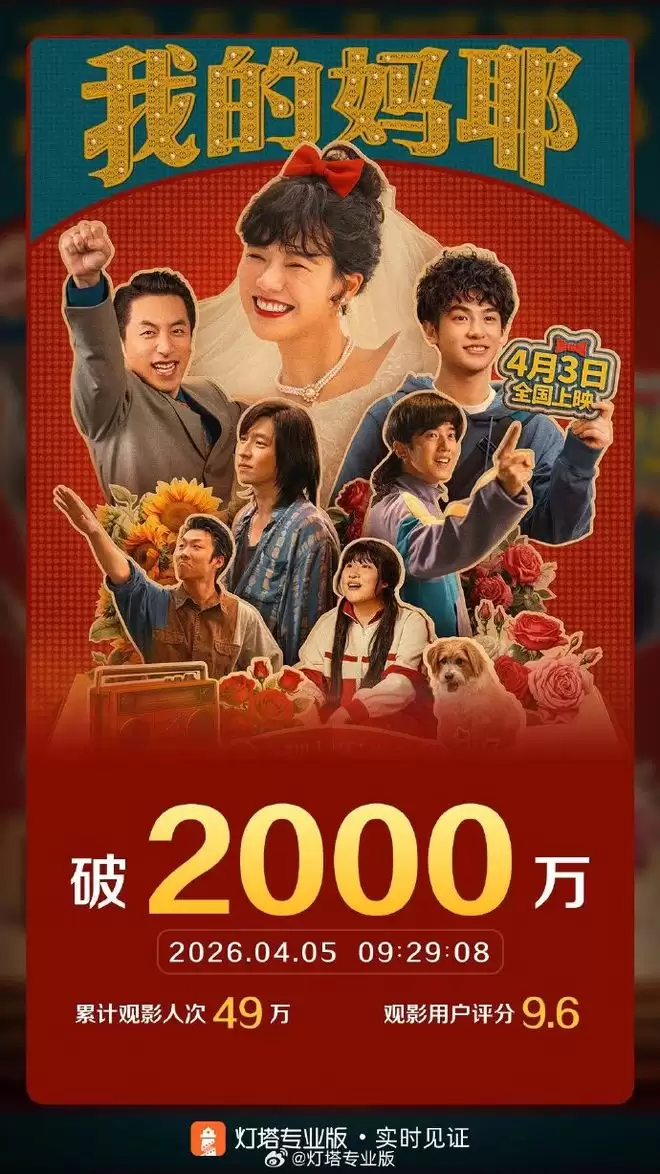 节日档期的观影热潮仍在持续,一部备受关注的新片《我的妈耶》传来最新票房捷报。根据灯塔专业版截至4月5日上午9时29分的实时统计数据显示,该影片票房已成功突破2000万元大关,市场表现亮眼。