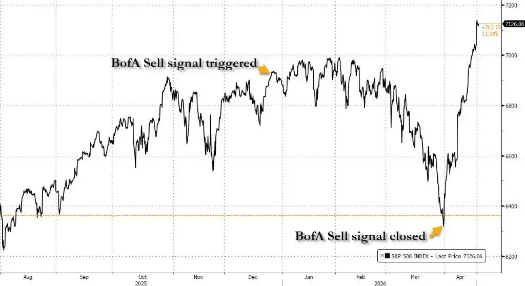 这一切换速度由流动性扩张与再杠杆化双重驱动,但也为行情可持续性打上问号。此前,美银"卖出"信号于3月底触发,Hartnett亦在市场低点附近精准预判了本轮反弹的起点。