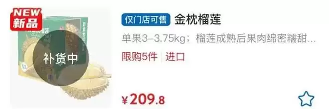 山姆会员商店的情况也类似,其金枕榴莲(仅限门店销售)的标签上,也清晰地印着“补货中”三个字。