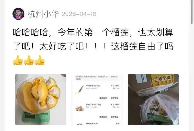 “今年的第一个榴莲,也太划算了吧!”