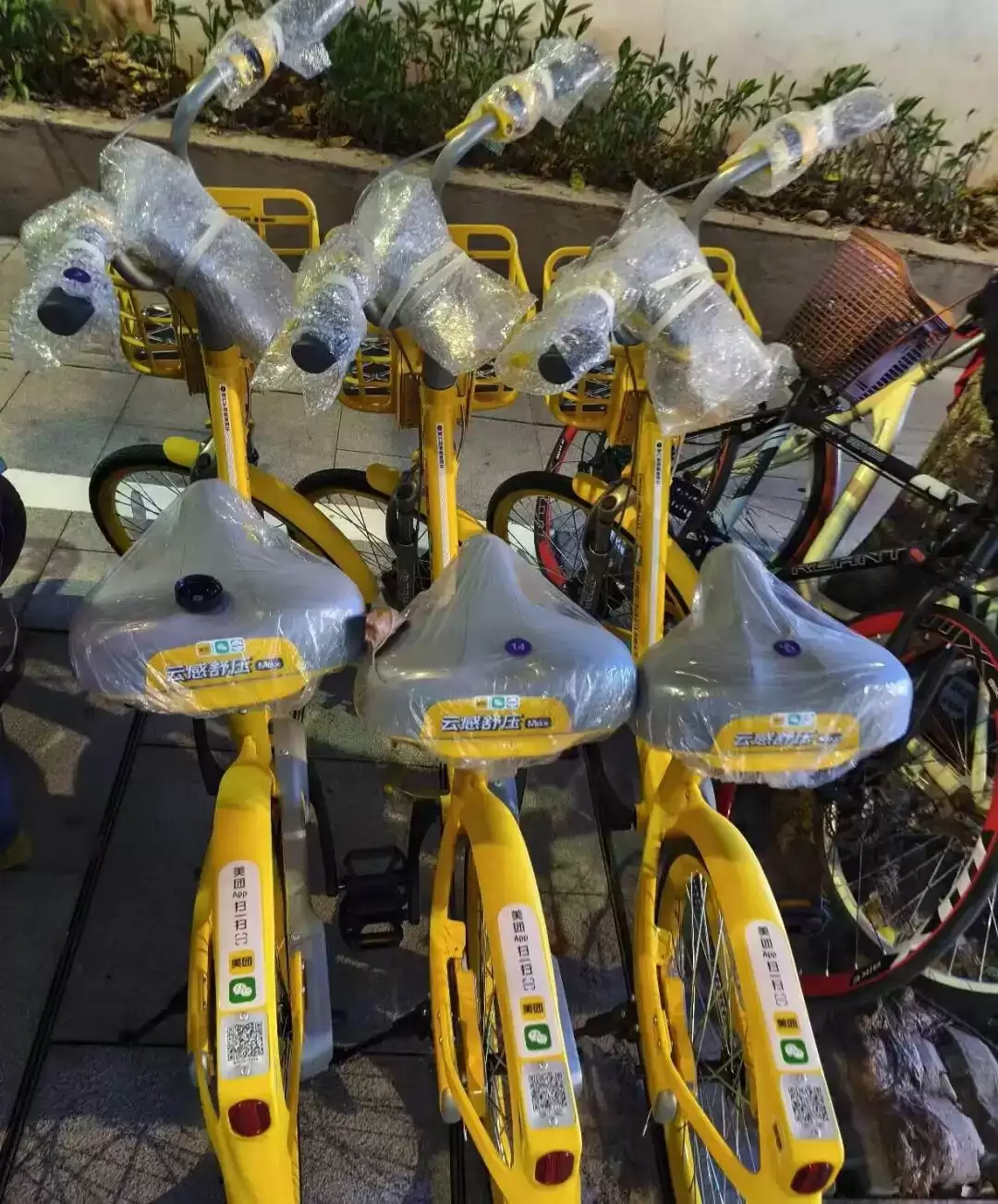 另一边,美团的小黄车则默默把坐垫卷成了“小沙发”,厚厚软软地趴在那儿,像是在向每一个被早高峰摧残过的臀部示好。