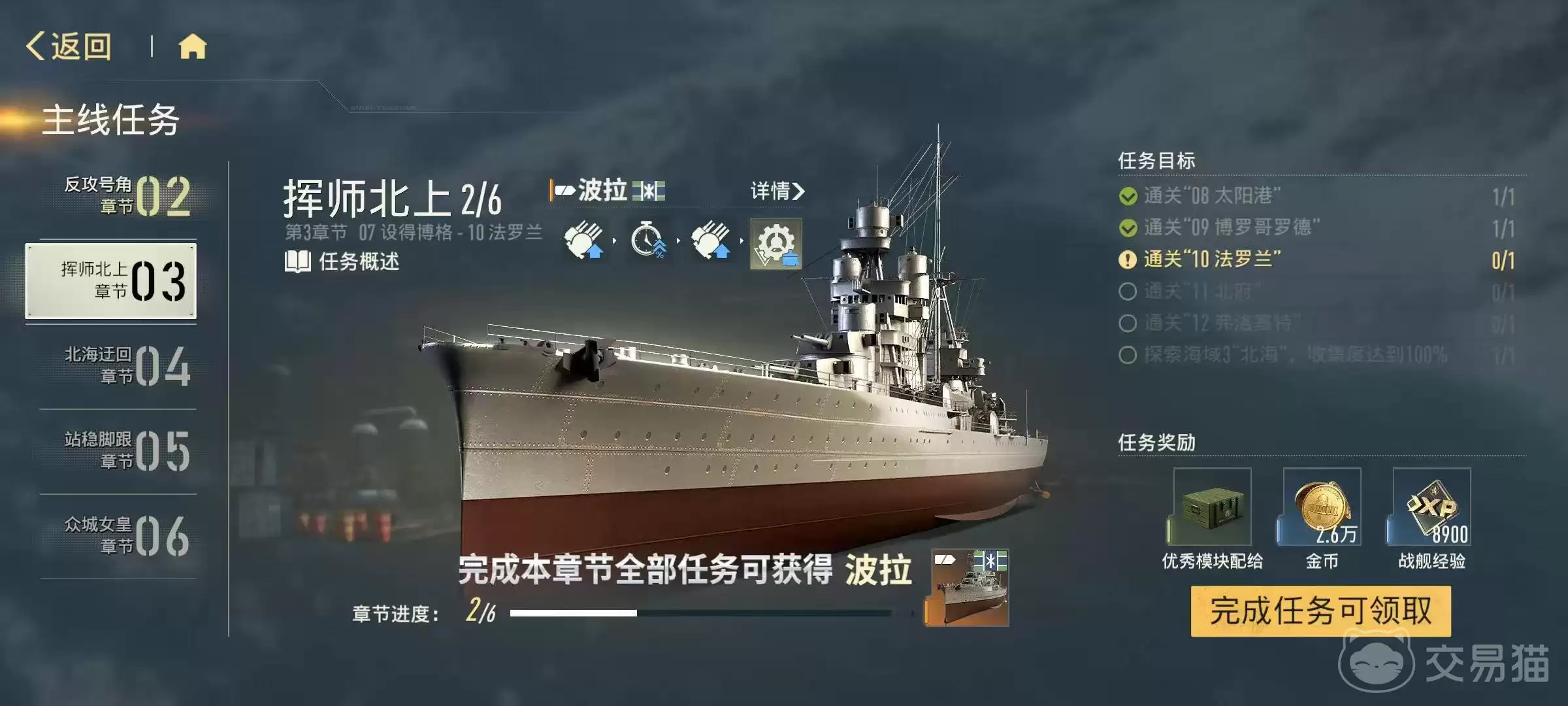 对于追求快速成型的玩家,定向抽取无疑是加速养成的有效方式。然而,长期稳定游玩的玩家也有一条明确的成长路径:游戏设有章节解锁奖励机制,当你完成指定的主线章节后,可直接领取一艘完整的传奇战舰,省去了碎片合成的漫长周期。