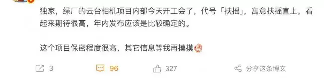 云台相机市场再添重磅玩家,OPPO“扶摇”项目年内将至 今天午间,知名数码博主 @数码闲聊站 爆出一个猛料:绿厂OPPO的云台相机项目内部已经正式“开工会了”。这个项目内部代号“扶摇”,取“扶摇直上”之意,并且大概率会在今年内正式发布,目前项目保密等级“很高”。 消息一出,评论区立刻热闹起来。该博主