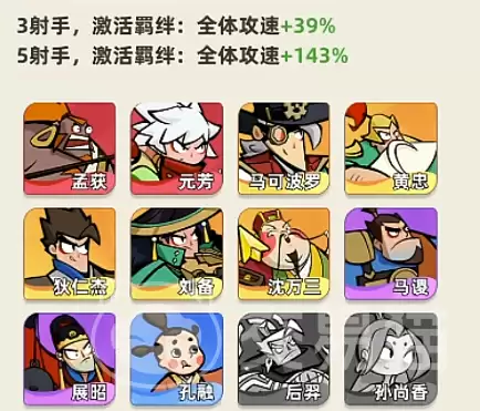 阵容中的另一位红色稀有度射手孟获,扮演着副核的角色。他的核心作用是提供团队减伤并承担前排压力。作为五射手体系中唯一偏重生存的射手,他的“减伤+抗压”特性,有效弥补了纯射手阵容身板脆的固有短板。虽然获取难度较高,但一旦入手,实战适配性极强。