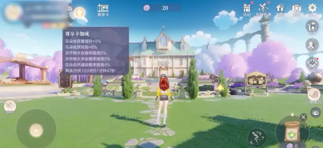 当然,本次版本更新的内容不仅限于尊享卡。梦幻庄园系统本身也进行了一系列实用优化,从自定义花径到拍照功能,全方位提升玩家的互动体验。接下来,我们将逐一介绍这些优化内容。
