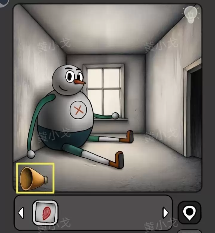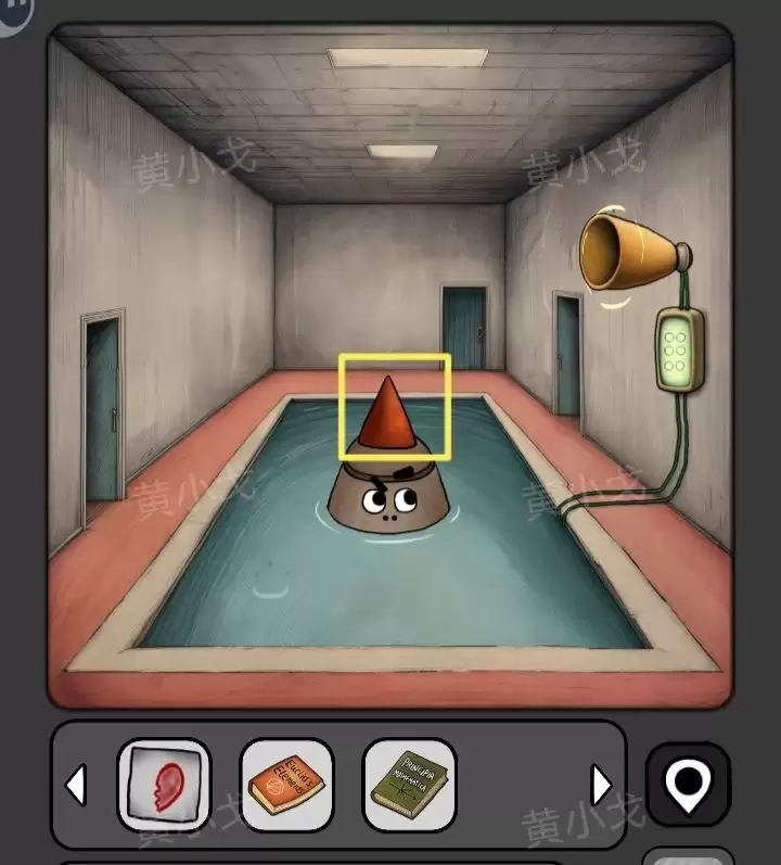 9. [泳池机关]将之前获得的【喇叭】装入装置。点击装置上的机关,调整密码锁的方向。解密线索来源于[灯泡人]场景墙上的涂鸦,其指示的顺序为:左右,上下,右左。