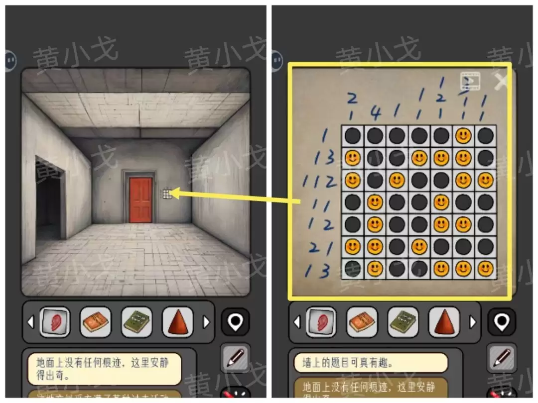 11. [红色的门]点击墙上的密码锁,完成一个数织(Nonogram)图画逻辑游戏。