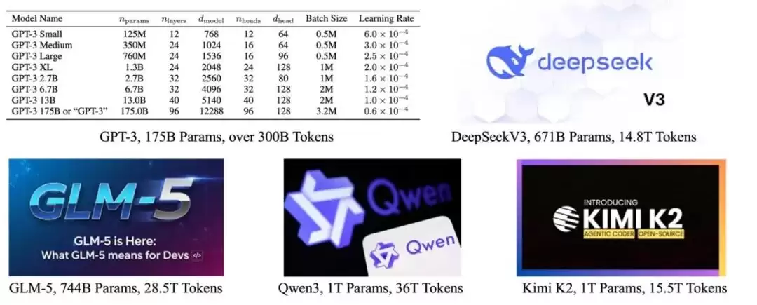 参数和数据的扩展,则是最符合人类直觉的部分。从深度学习的最早期开始,每本教科书都在教授同一套配方:更多数据、更宽的层、更深的网络,自然带来更好的表征能力。从GPT-2的15亿参数到如今的数万亿规模,这套配方一直管用。这似乎说明,大模型团队不需要引入新机制,只需要持续拓展这些已被验证的方向。
