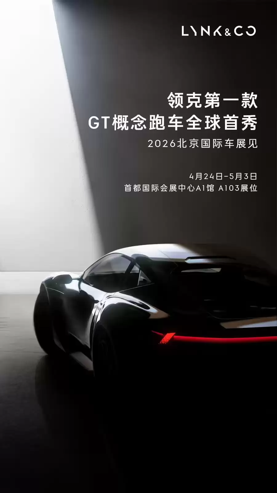领克第一款 GT 概念跑车官宣:四天后 2026 北京车展见