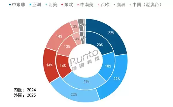 2025年中国大陆电视出口格局生变:中东非跃居首位,北美市场退居第三