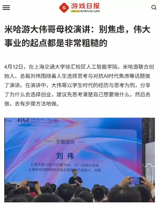 别焦虑!米哈游大伟哥母校演讲:伟大事业起点都粗糙
