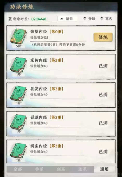 首先需要明确,功法与神通是两条独立的养成路线。功法的核心机制在于支持无限叠加研习,每一本都提供固定的基础属性加成。玩家通过持续修炼来提升功法的研习层数,层数越高,获得的属性增益就越显著。其最大的便利在于“无感生效”——功法无需手动装备,一旦获取并开始修炼,其属性便会自动、永久地加成到角色身上,实现真正的被动成长。