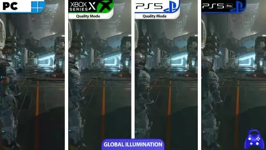 另一个值得注意的细节是:PS5和Xbox Series X均提供了“性能优先”与“画质优先”两种图形模式供玩家自由切换,而目前的PS5 Pro仅提供一种统一的图形模式。对于热衷于根据场景自定义设置的玩家而言,这或许是一个小小的遗憾。