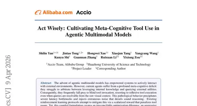当AI学会“自知之明”:阿里巴巴新研究如何让AI不再滥用工具 这项由阿里巴巴集团Accio团队与华中科技大学联合开展的研究,以预印本形式发布于2026年4月,论文编号为arXiv:2604 08545。有兴趣深入了解的读者可以通过该编号在arXiv平台查阅完整论文。 你有没有遇到过这种人:明明自己就