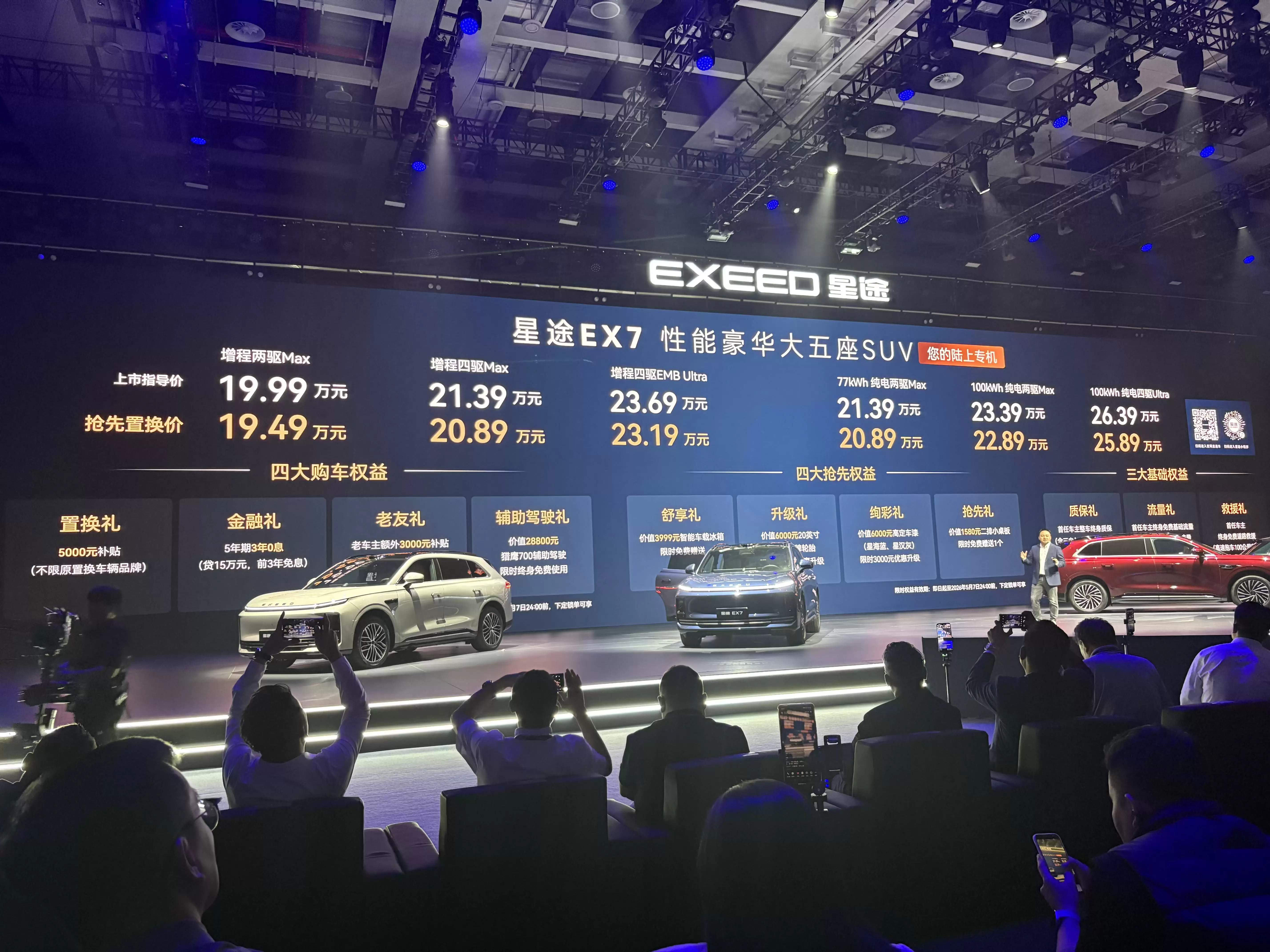星途EX7上市!19.49万起享航空级制动,增程纯电双动力可选