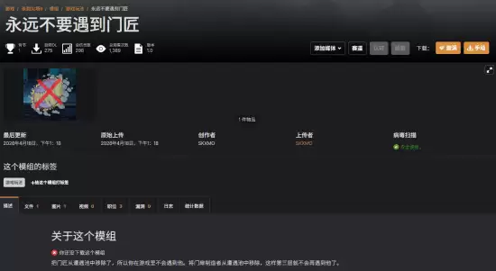 于是,在知名模组网站Nexus Mods上,一款名为“Never Encounter Doormaker”(中文译“永除塔扉”)的MOD快速冲上热门榜首。其功能描述简洁明了:“将门扉缔造者从Boss遭遇池中移除,确保玩家在第三层不会再与之对战”。
