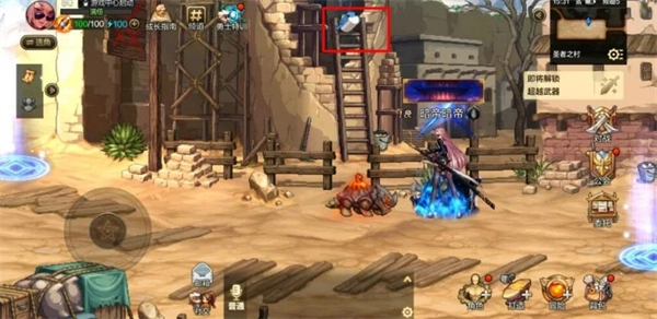 前往圣者之村的侵蚀之地间,具体位置在场景右上方的梯子顶端,即两个地图的衔接点。找到梯子并点击其顶部,即可完成交互。