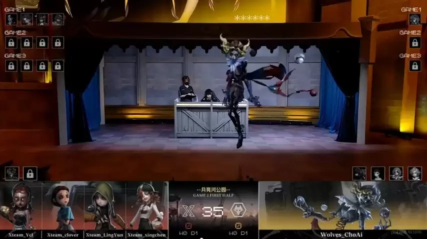 第三局,Xteam求生者阵容是幸运儿、魔术师、守墓人和园丁(禁用了歌剧演员和杂货商);成都Wolves的ChoAi则选出“跛脚羊”。(禁用了先知、古董商、教授和幻灯师)