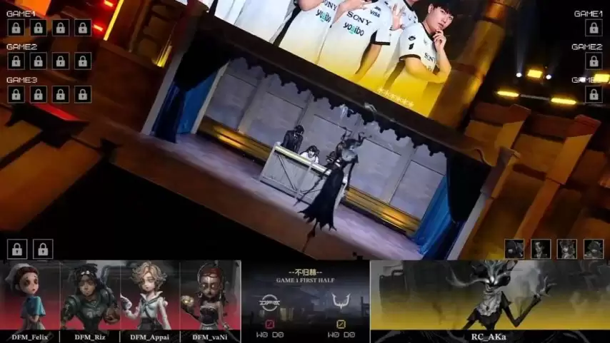 第二局,DFM求生者阵容调整为木偶师、大副、魔术师和古董商(禁用了“台球手”);RC监管者AKa则选出隐士进行应对。(禁用了先知、幻灯师、守墓人和飞行家)