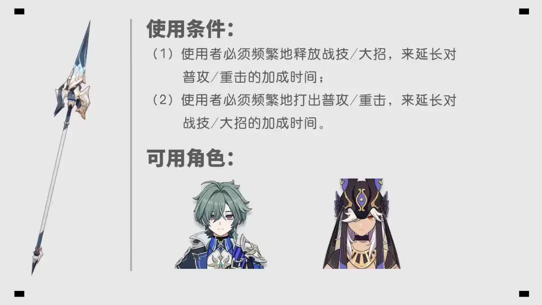 第一,使用者必须频繁施放元素战技或元素爆发,以维持对普通攻击和重击的加成时间。