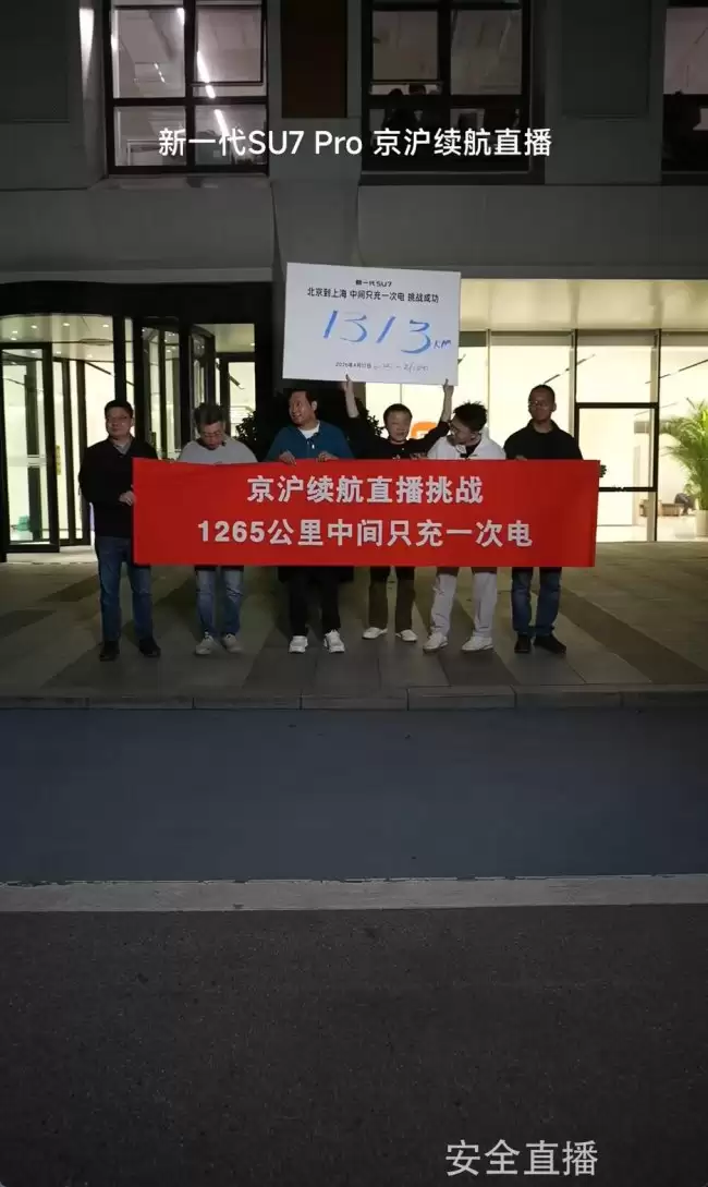 晚上9点40分,车队最终抵达上海金桥的小米5G未来中心工区。此时,全程用时约15小时,总行驶里程定格在1313公里,而车辆表显续航还剩19公里。至此,“满电出发,一次充电从北京到上海”的目标被清晰验证。