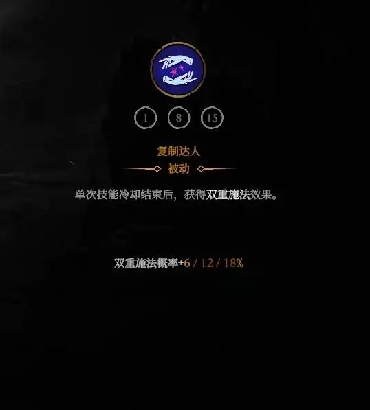 职业技能取舍:【复制达人】是基石技能,必须优先点满以直接提升双倍施法概率。同时,建议投资那个在触发双倍施法时回复生命的技能,它能显著增强你的持续作战与生存能力,确保在高强度输出时站得更稳。