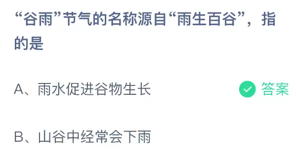 以上便是关于“谷雨”节气名称含义以及支付宝蚂蚁庄园2026年4月20日问题答案的详细解读。想获取更多每日答题攻略与蚂蚁庄园最新资讯,请持续关注本站更新!