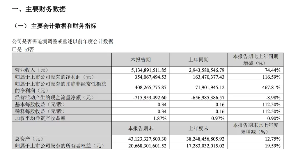 具体来看,一季度公司实现营业收入51.35亿元,同比增幅高达74.44%;归母净利润达到3.54亿元,同比增长116.59%。更值得关注的是扣非净利润的表现,同比大幅增长467.81%,达到4.08亿元。这个数字清晰地表明,公司主业的盈利质量得到了显著改善,增长的内生动力非常强劲。