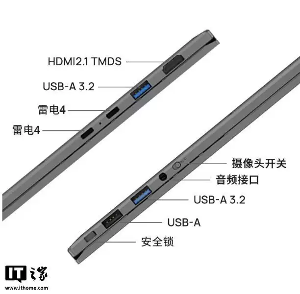 接口扩展性往往是轻薄本的痛点,但无界14 2026款在这方面给得比较足。机身左侧依次排布了1个HDMI 2.1接口、1个USB-A 3.2接口以及2个功能全面的雷电4接口。右侧则提供了1个USB-A 2.0接口、1个USB-A 3.2接口和1个3.5mm音频接口。丰富的接口配置意味着外出时基本可以告别扩展坞,这点对于移动办公用户来说非常友好。