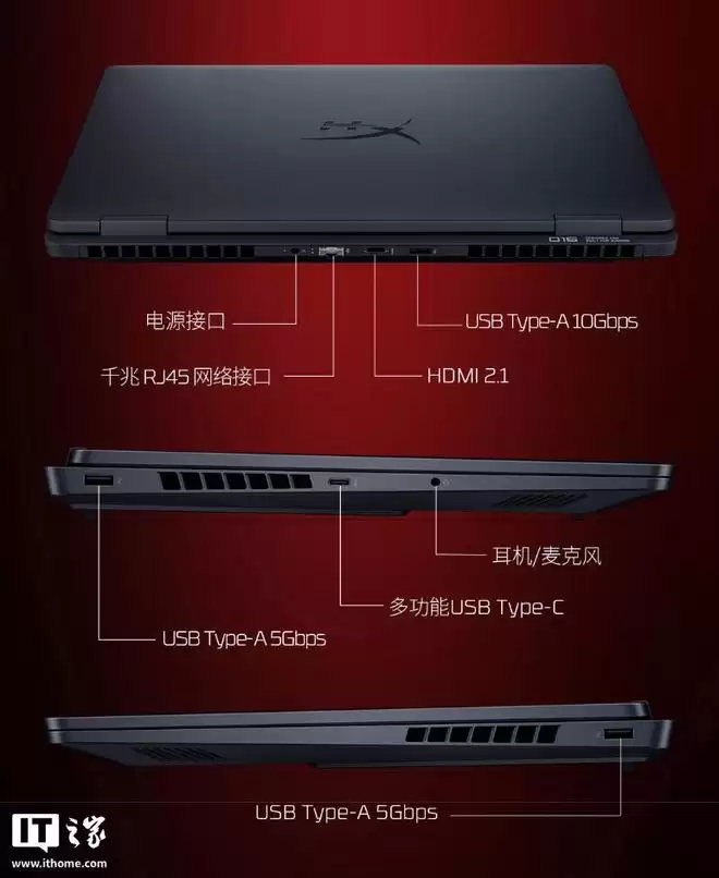 这块16英寸的屏幕参数更为激进,同样是2.5K分辨率、500尼特亮度,但刷新率提升到了240Hz,对于竞技类游戏玩家来说是个好消息。C面的键盘也升级为四分区背光,更具游戏氛围。接口配置略有不同:背面提供了一个10Gbps的USB-A接口、一个HDMI 2.1接口和一个RJ45网口;左侧则是一个5Gbps的USB-A接口、一个“多功能”USB-C接口以及3.5mm音频接口;右侧还有一个5Gbps的USB-A接口。