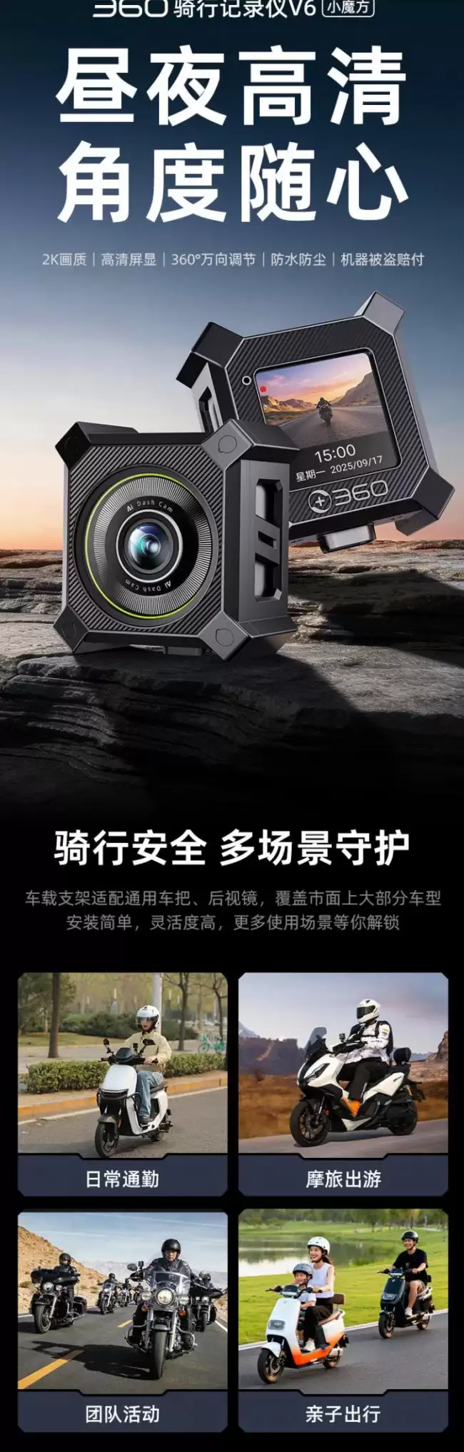 360 骑行记录仪 V6 小魔方上架:可录 2K 分辨率视频、支持 360 度万向调节 299 元