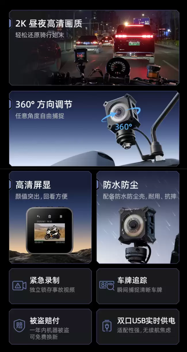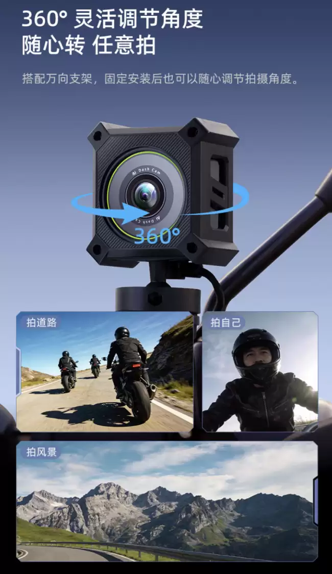 当然,作为一款记录仪,它的基本功也很扎实。机身支持 360 度万向调节,你想拍哪个角度,拧一下就行,非常灵活。外壳配备了防水防尘设计,应对日常的风吹雨打基本没问题。核心的摄像头上,它能够录制 2K 分辨率的视频,并且拥有 146 度的广角视野,足够把前方路况和两侧环境都清晰地收纳进来。