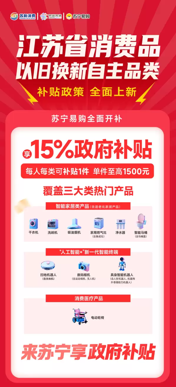 每人最高1.5万元,江苏以旧换新“省补”苏宁易购开补