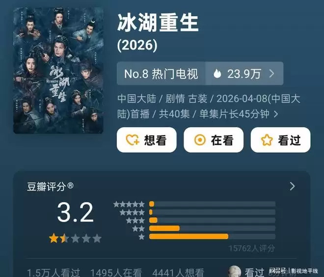 客观而言,这位导演在古装偶像剧领域的近期表现,堪称接连失利。其执导的《冰湖重生》因制作粗糙、剧情漏洞百出而饱受批评,豆瓣评分低至3.2分,已成为行业内的典型反面案例。