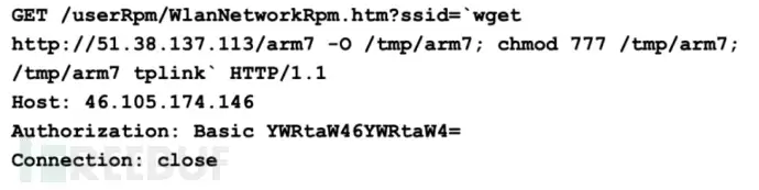 攻击者具体采用了何种手段?根据Palo Alto Networks Unit 42威胁情报团队发布的研究报告,他们的全球网络遥测系统在2025年6月该漏洞被列入KEV目录前后,监测到了攻击流量的显著激增。攻击模式具有高度一致性:黑客向目标路由器的/userRpm/WlanNetworkRpm.htm页面发送HTTP GET请求,试图滥用其中的ssid参数(注:实际漏洞参数为ssid1)来执行预置的恶意操作。简而言之,攻击载荷旨在从远程服务器下载一个名为arm7的恶意ELF可执行文件至设备的/tmp临时目录,随后修改文件权限并携带参数运行该程序。