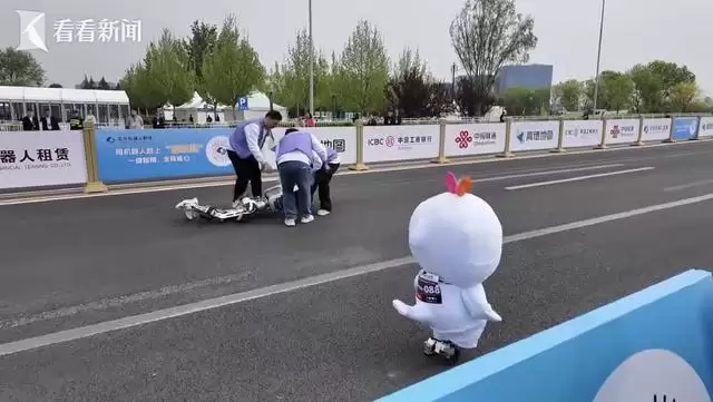 接下来的场景,充满了赛场的温情与坚持。“大湾鸡”见人类工作人员赶来施救,便继续自己的赛程跑开了。而摔倒的“小铁骑队”选手,则被妥善抬至路边休整。短暂的调整后,它重新站了起来,再度投入追赶。赛道旁,人类观众纷纷为之加油鼓劲,这场面,已然超越了单纯的竞赛。