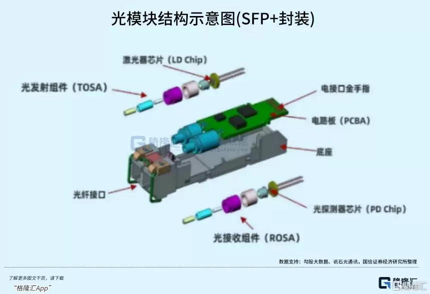 尽管在价值占比上,它或许不如GPU、ASIC或HBM那样引人注目,但激光器芯片确实是光模块实现光电转换功能的核心组件。从技术架构上看,发射端的激光器芯片(如DFB、EML)负责将电信号转化为光信号,而接收端的探测器芯片则完成逆向转换。两者的性能直接决定了光模块的传输质量,其价值量在高端光模块中占据着举足轻重的比例。