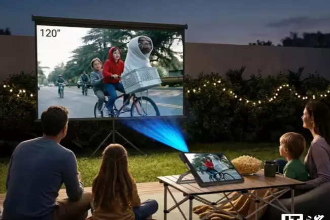 真正的亮点在背面和侧面。平板背面装备了双摄系统:主摄为5000万像素的索尼IMX766传感器,而另一颗则是6400万像素的豪威OV64B夜视摄像头,专为低光环境设计。更特别的是,在平板侧面,还内置了一个1080P分辨率的投影仪,其亮度为260流明,最大可以投射出120英寸的画面,投影距离可达4米。