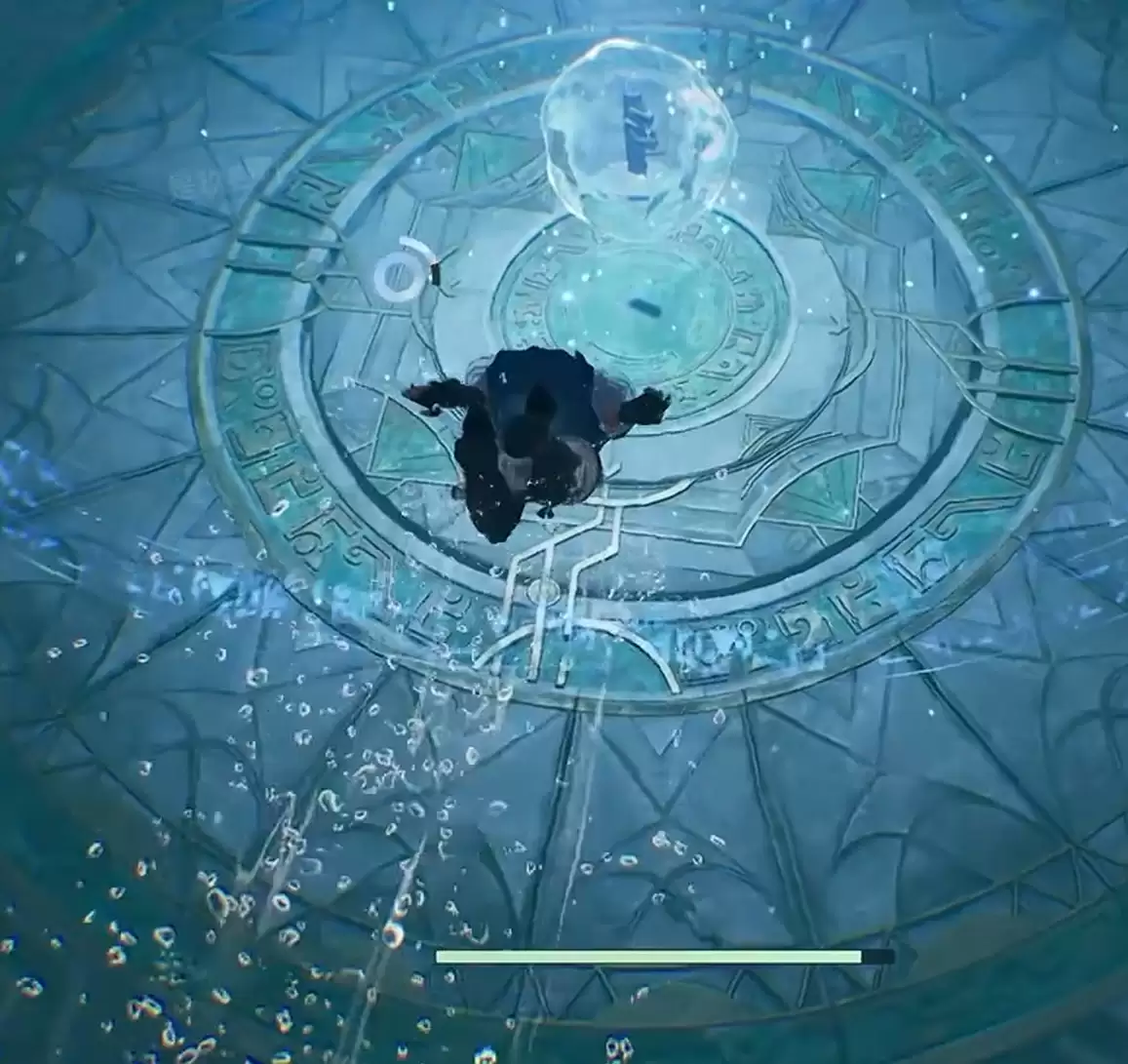 水下光线较暗,但视野尚可。请在水底仔细搜寻,很快便能发现一座风格古朴的祭坛。而任务目标——叠嶂符印,就摆放在这座祭坛的中央。游近并与之互动,即可成功拾取。