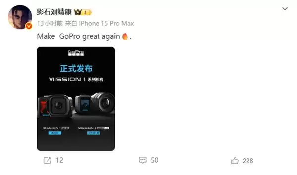 Mission 1系列的发布,在行业内也激起了不小水花。面对GoPro这番来势汹汹的升级,其重要竞争对手、影石(Insta360)的创始人刘靖康在社交媒体上直接引用了那句经典口号:“Make GoPro great again(让GoPro再次伟大)”。这句看似调侃的引用,背后或许是对行业老大哥重拾激进创新姿态的一种认可,也预示着运动相机赛道新一轮竞争的开始。