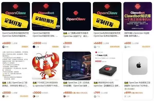 海外的情况相当直接。代安装平台SetupClaw已经明码标价:托管安装3000美元、远程配置5000美元,如果需要技术人员现场服务,价格最高能达到6000美元。这股风潮也迅速刮到了国内,在各大社交和二手平台上,相关的代装服务报价水涨船高,单次收费从500元到7000元不等。这还不算完,后续的定制开发服务——比如帮你配置社交运营、策略开发等特定功能——更是能卖到数百甚至上万元。