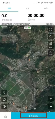 第二步,点击后,应用会直接跳转到路线记录的主界面。界面简洁明了,一个大大的“开始”按钮就在下方等待着你。点击它,你的旅程轨迹记录便正式启动了。这之后,软件就会在后台持续、安静地绘制你的行进路线。
