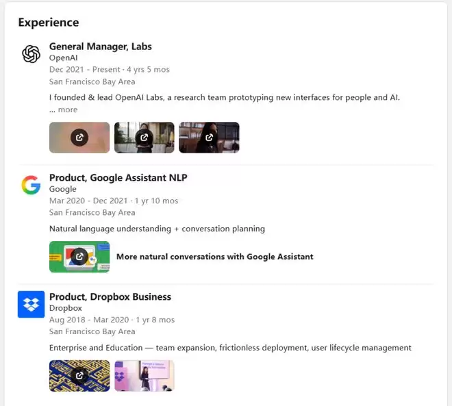 在踏入OpenAI大门之前,她已经在科技行业积累了扎实的产品和管理经验:先后担任过Google助手自然语言处理(NLP)产品经理和Dropbox的产品经理,还在后来被Slack收购的Rimeto公司担任过合同软件工程师。此外,她也没有放下对学术的热忱,曾在斯坦福大学担任计算机科学课程的助教。