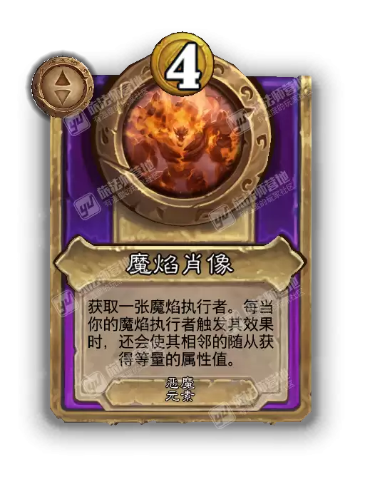 让我们直接剖析它的具体效果:当你成功获取魔焰肖像时,会立即免费获得一张核心随从牌——魔焰执行者。然而,这只是开始。其真正的精髓在于强大的战场联动能力:每当你的魔焰执行者在战斗中触发其自身的增益效果时,所产生的属性加成将不会局限于自身。关键在于,与它相邻的左右两名随从也将同步获得一份完全等量的属性提升。