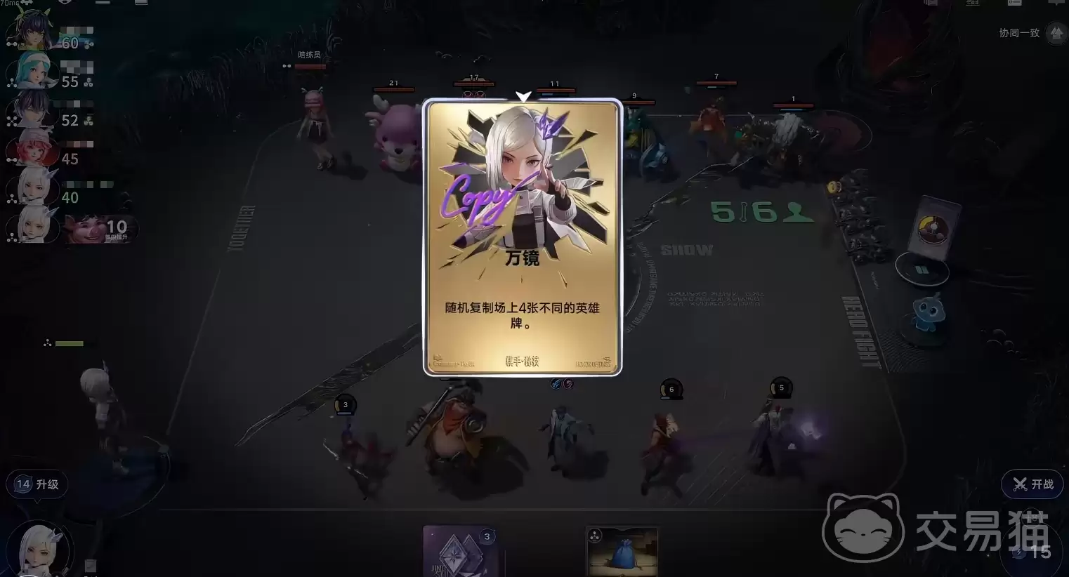 当你熟练运用基础技能后,更强大的进阶能力——“镜像之力”就登场了。这是她的棋手秘技:累计打出4张“镜像”牌后,你会立刻获得一张秘技牌“万镜”。这张牌可就厉害了,它能随机复制当前场上任意一名英雄(当然,不包括镜像牌),直接填补你阵容中缺失的那块关键拼图。无论是追三星核心,还是临时转换阵容思路,这张牌都能显著缩短英雄的觉醒周期,让整体阵容的成型速度快人一步。