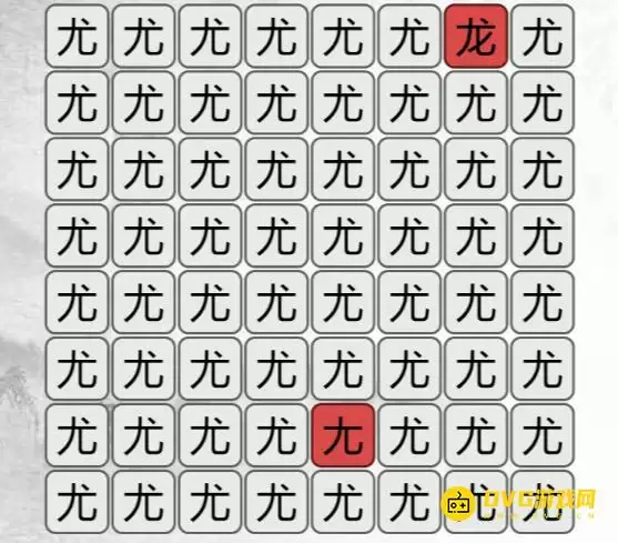 本关卡的目标非常清晰:在一系列外观相似的“尤”字中,精准地找出2个不同的汉字。具体来说,你需要找到的分别是:一个完整的“龙”字,以及一个缺少一点的“尤”字(即“尢”字)。